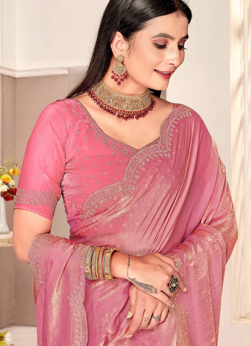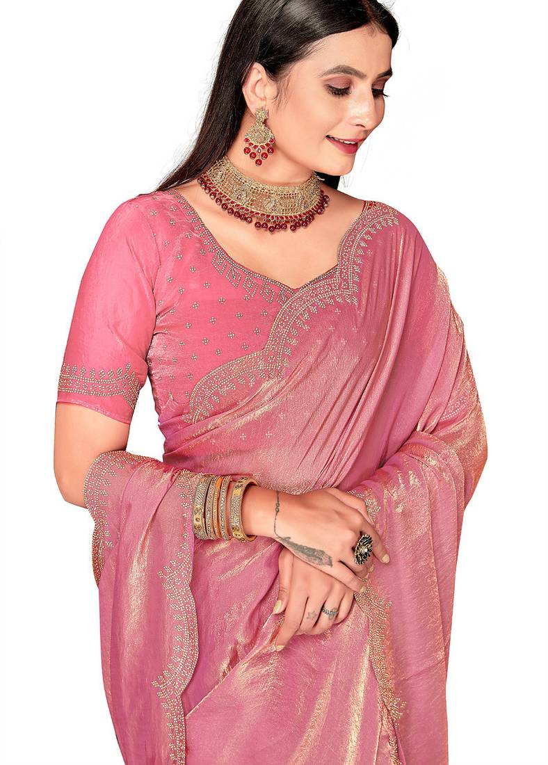 Traditional indian dusty pink handwork zarkan border silk blend saree