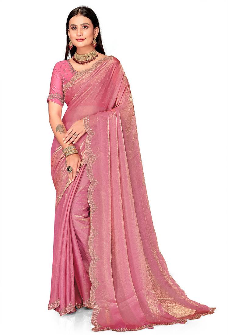 | Product Name | Traditional Indian Dusty Pink Handwork Zarkan Border Silk Blend Saree | |