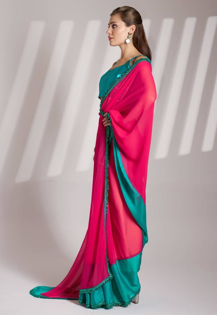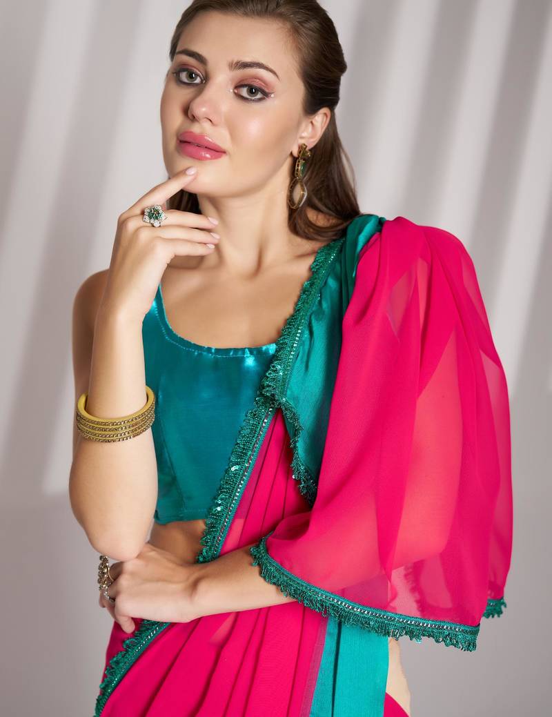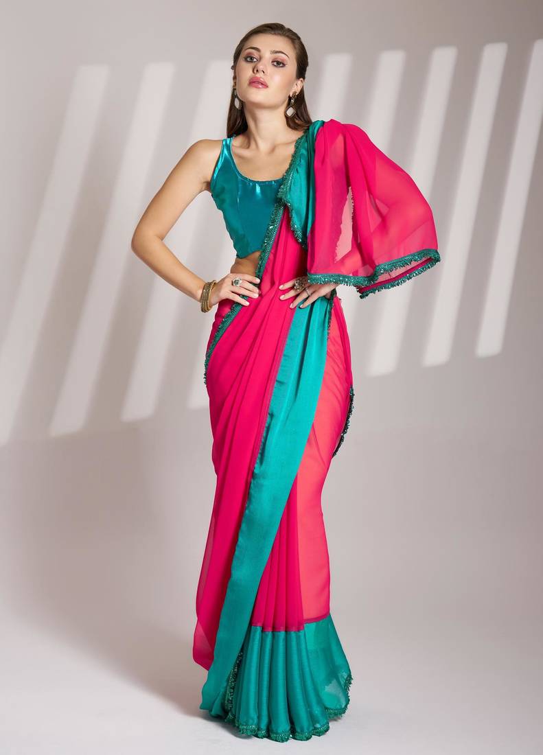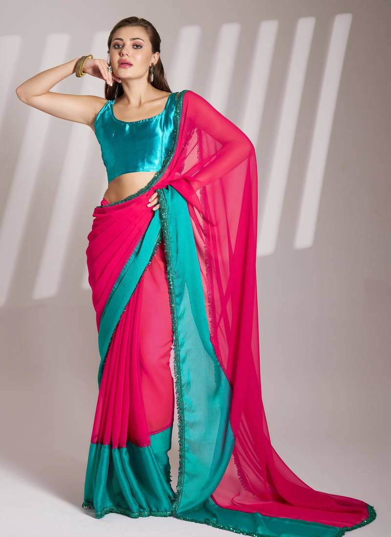 | Product Name | Pink And Turquoise Blue Chiffon Designer Saree With Blouse | |