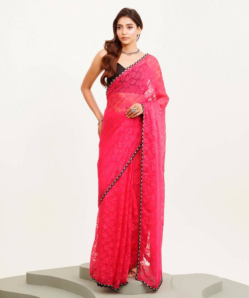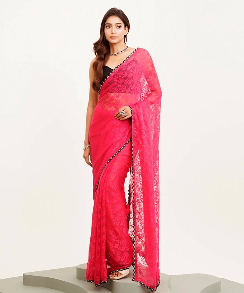 | Product Name | Pink Floral Brasso Designer Saree With Blouse | |