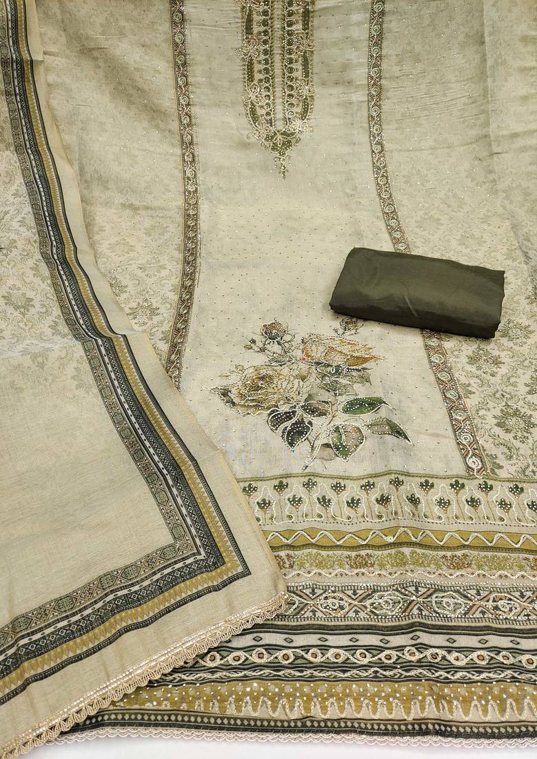 | Product Name | Green Cotton Silk Embellished Unstitched Dress Material | |