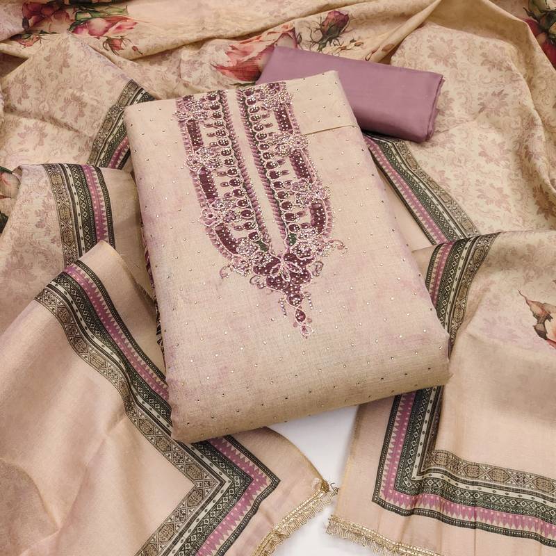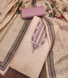 Lavender cotton silk embellished unstitched dress material