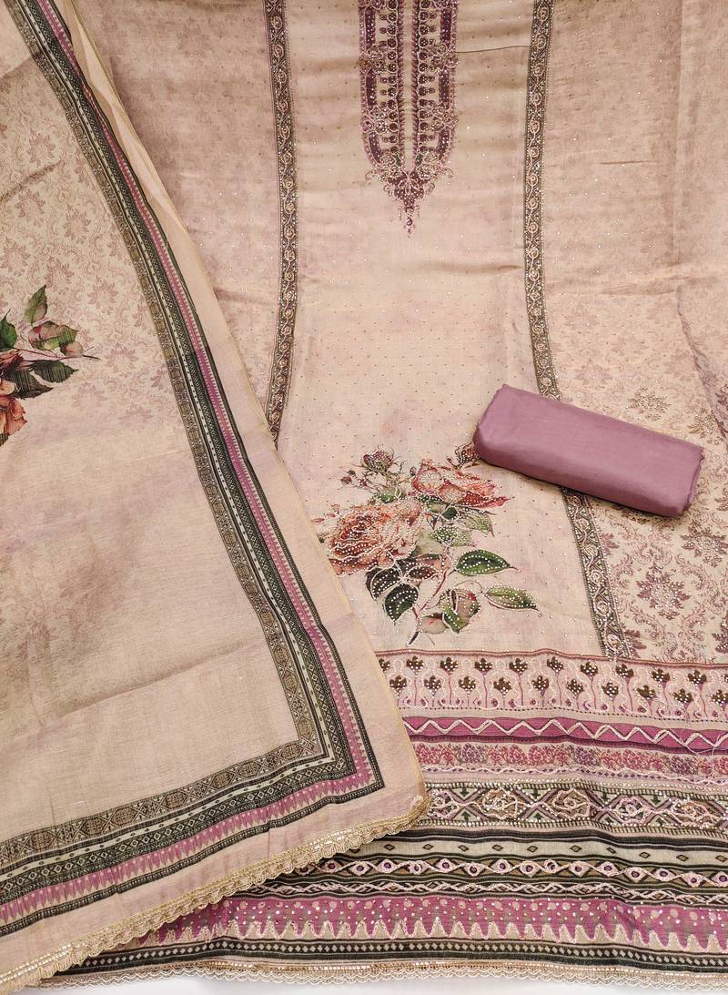 | Product Name | Lavender Cotton Silk Embellished Unstitched Dress Material | |