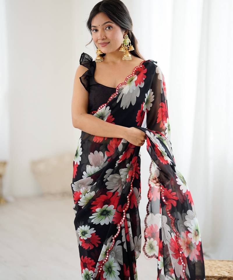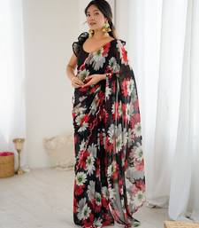 Black color georgette fabric designer printed bollywood style saree
