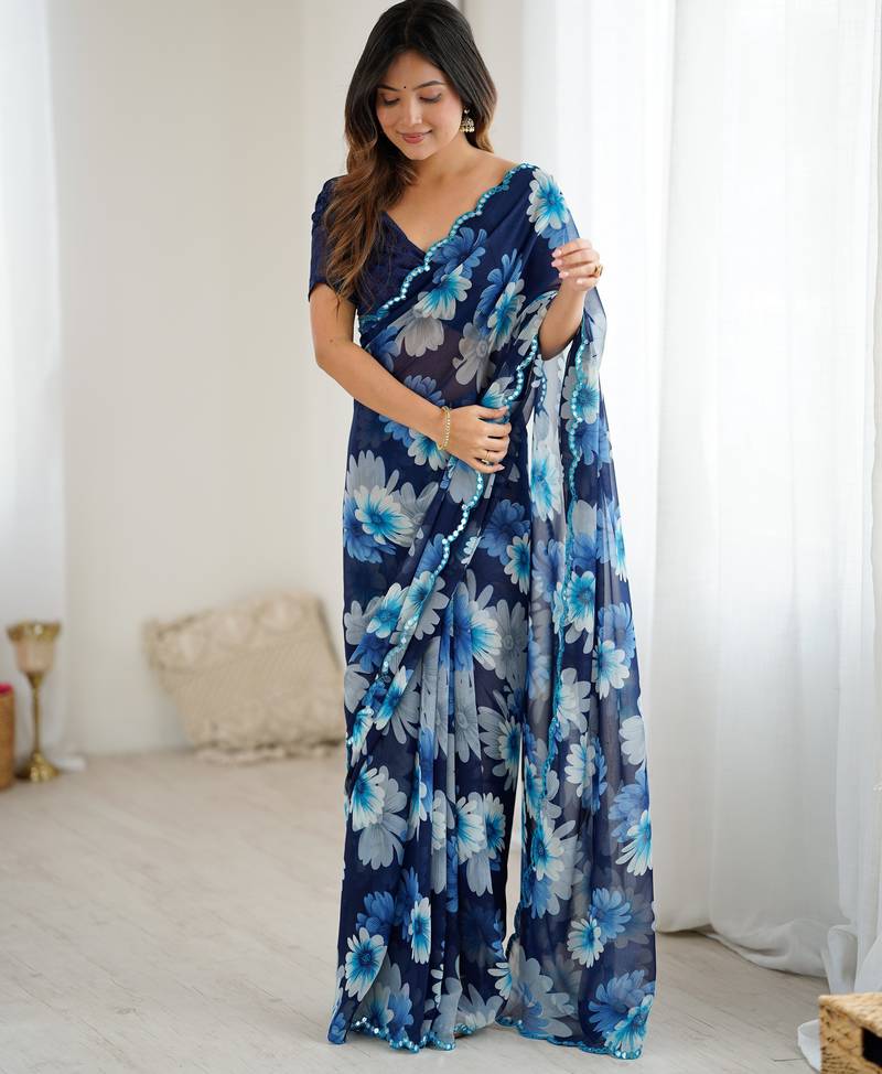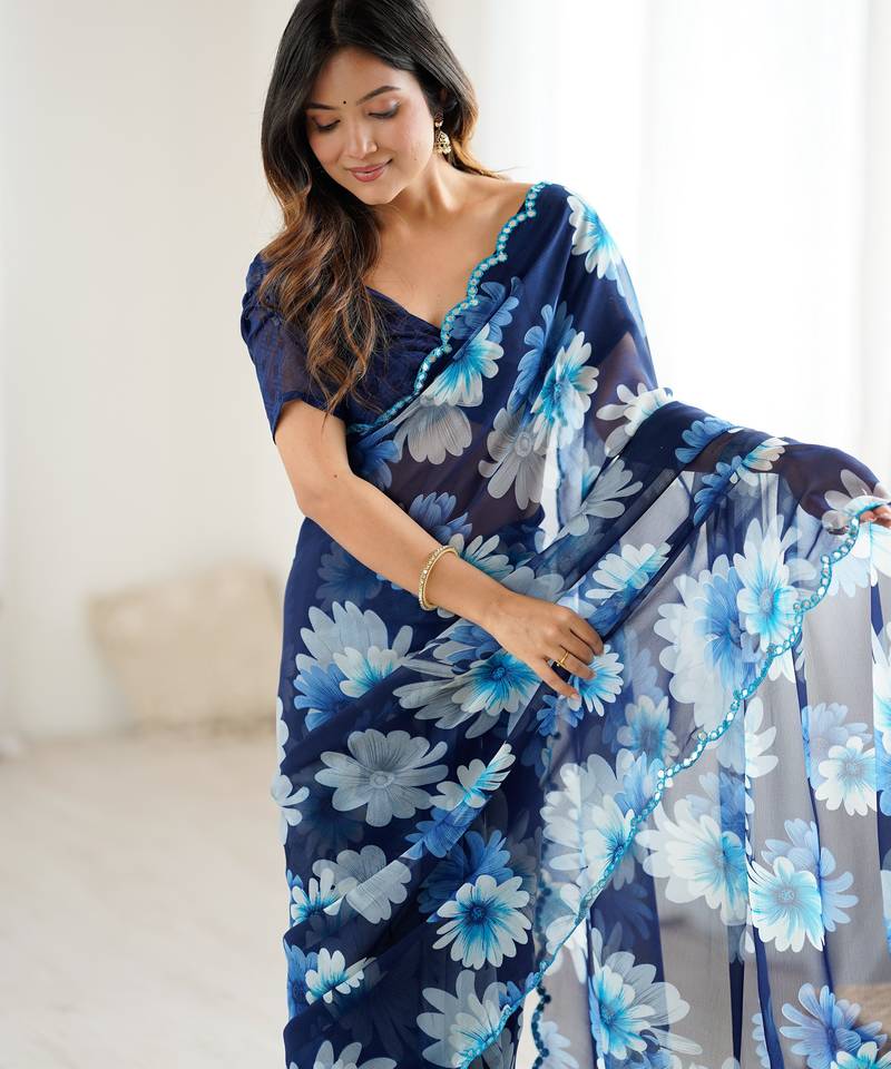 | Product Name | Blue Color Georgette Fabric Designer Printed Bollywood Style Saree | |