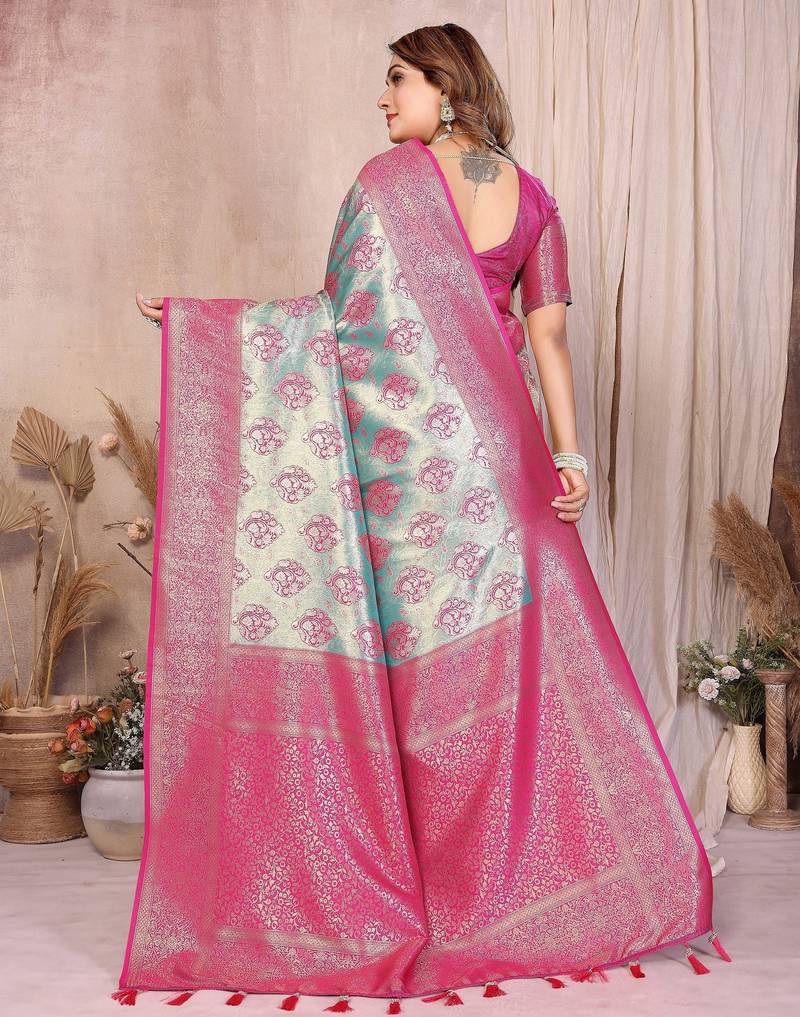 Blue color heavy rich banarasi tissue silk blend blend for ceremonial traditional looks