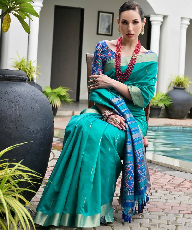 | Product Name | Blue Color Khadi Raw Silk Blend Blend Fabric Woven Meena Rich Pallu Border Designer Beautiful Saree | |