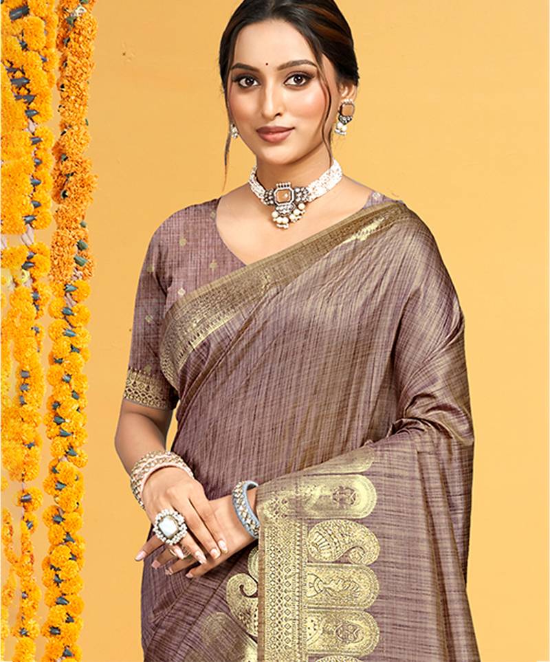 Brown color beautiful assam silk blend blend fabric saree woven designer saree