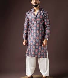 Dark grey color beautiful printed blended cotton fabric ceremonial men's kurta payjama