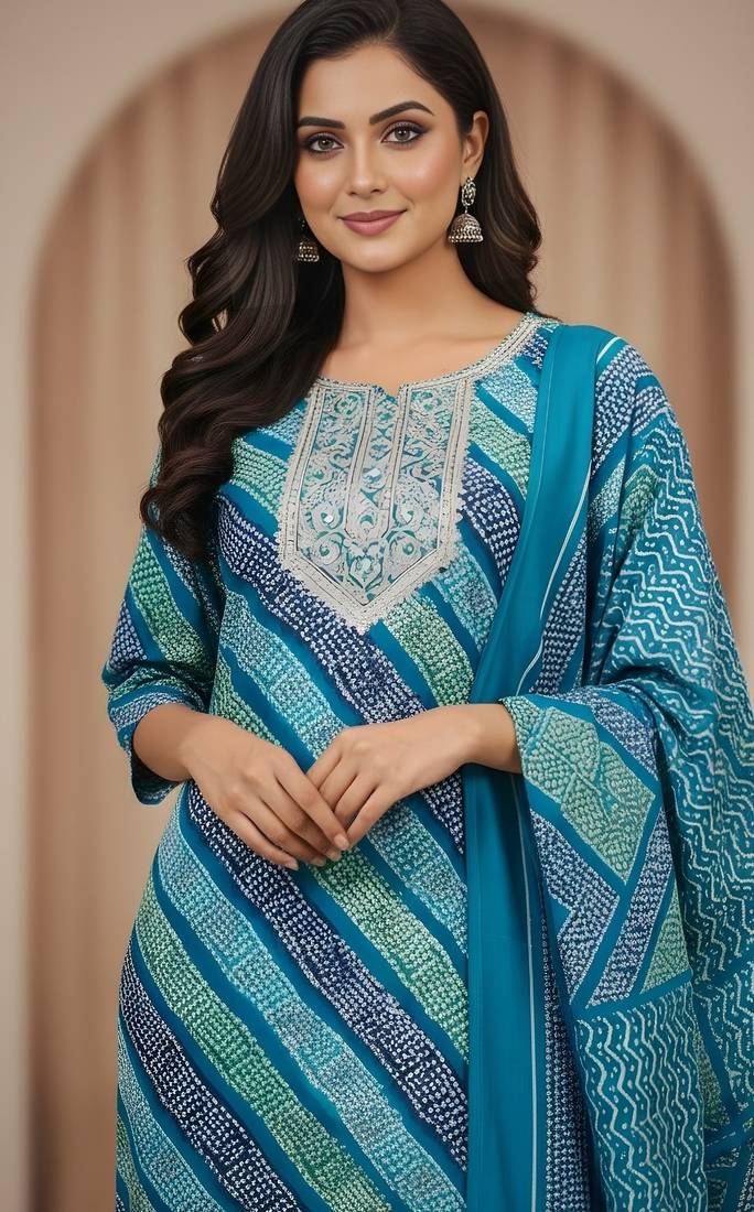 | Product Name | Firozi Color Cotton Fabric Stylish And Trendy Kurta Set For Ethnic Girls | |