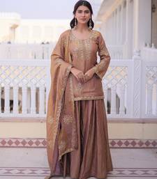 Gold color fendy crush fabric designer heavy embroidered ceremonial suit