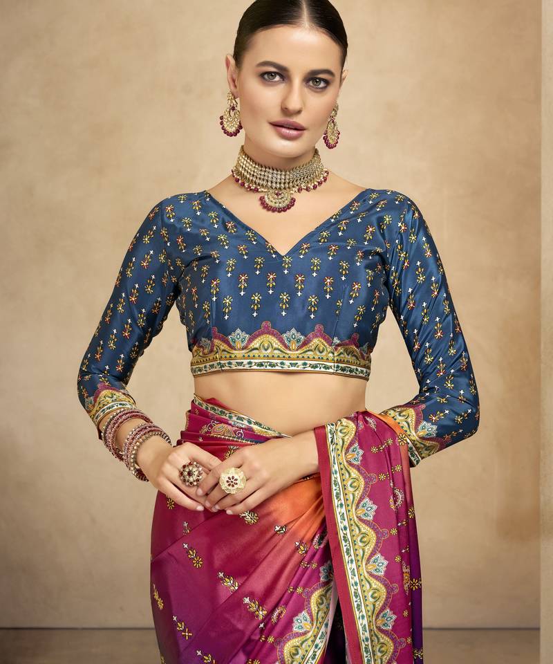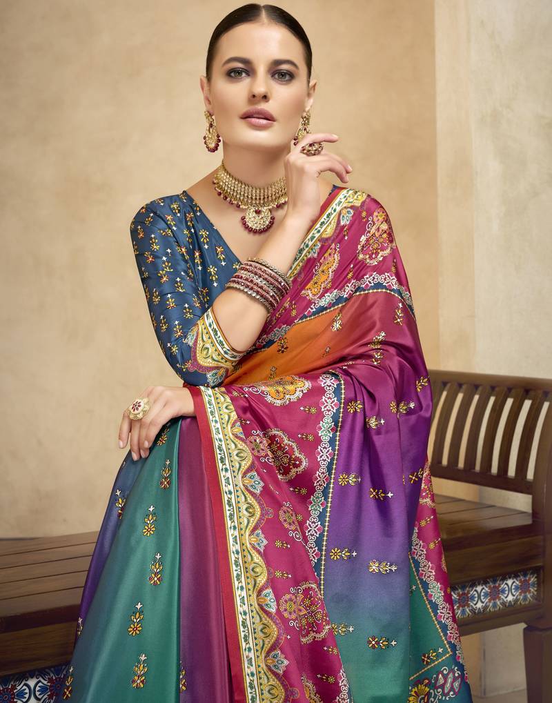 Graceful ethnic multy color bollywood style crepe silk blend designer digital foil printed saree