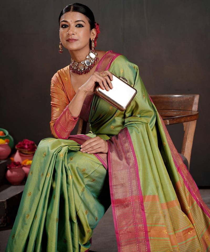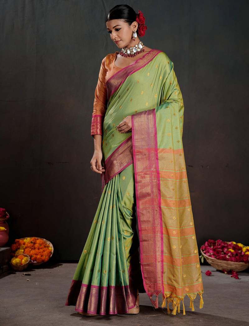 Product Name Green Color Graceful Art Silk Fabric Woven Jacquard Designer Saree