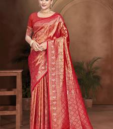 Maroon color kanjivaram silk blend fabric woven designer graceful partywear saree