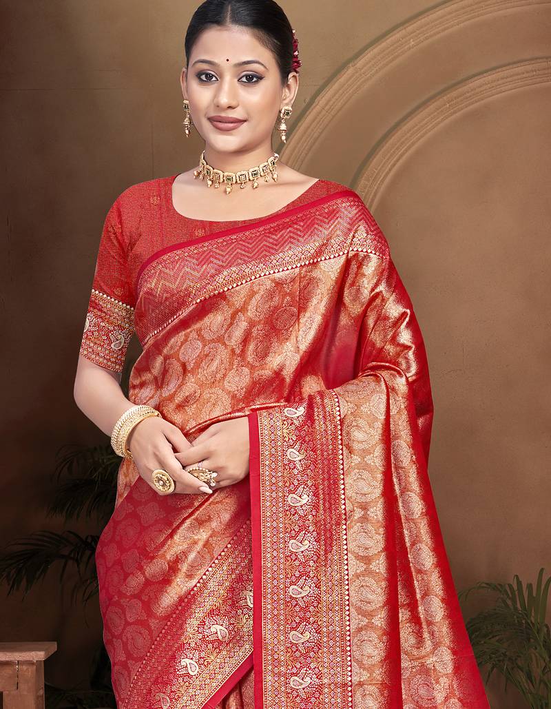 | Product Name | Maroon Color Kanjivaram Silk Blend Fabric Woven Designer Graceful Partywear Saree | |