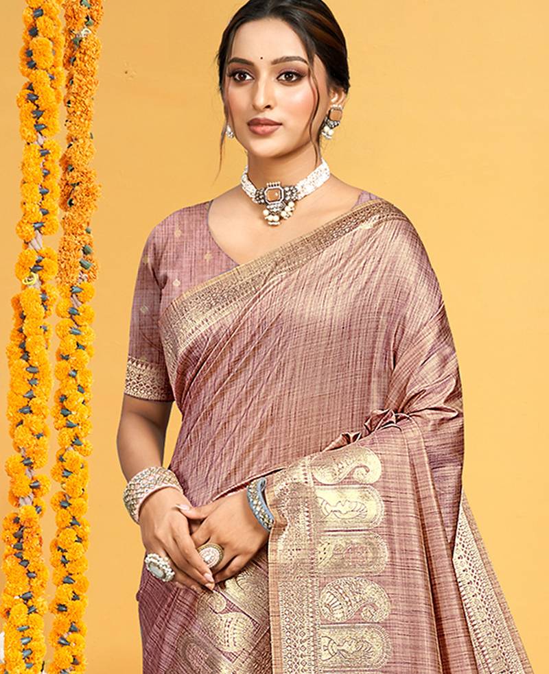 Mauve color beautiful assam silk blend blend fabric saree woven designer saree