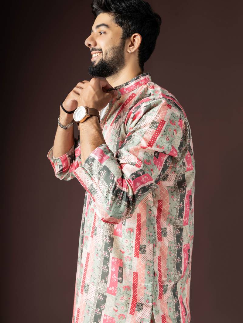 | Product Name | Multi Color Beautiful Printed Blended Cotton Fabric Ceremonial Men's Kurta Payjama | |