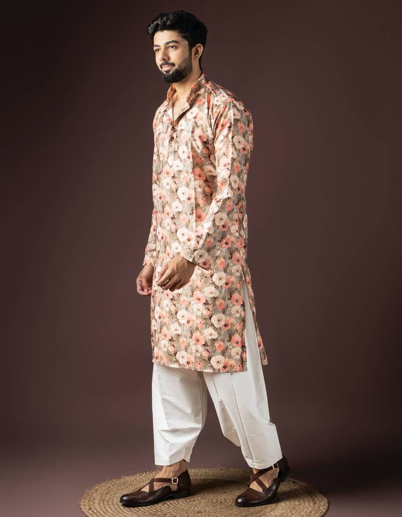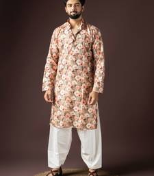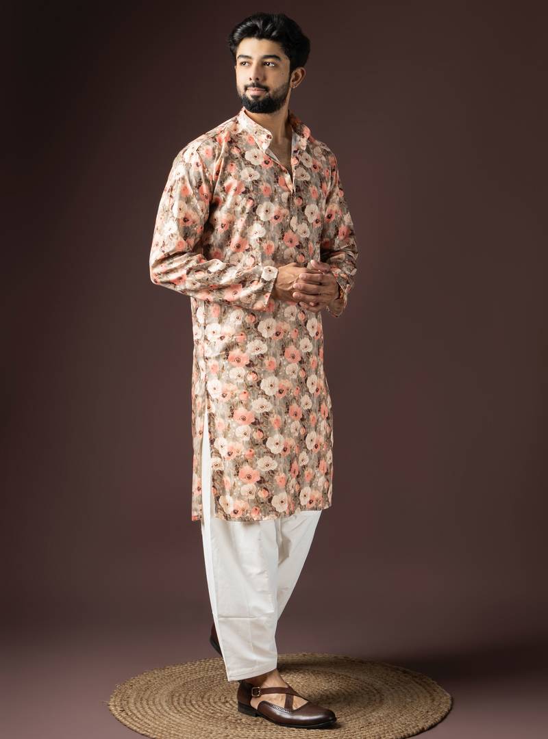 Multi color beautiful printed blended cotton fabric ceremonial men's kurta payjama