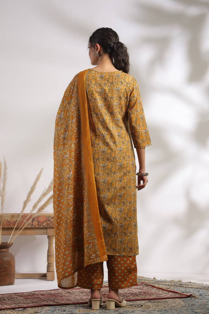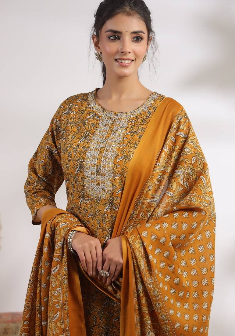 Mustard color cotton fabric stylish and trendy kurta set for ethnic girls