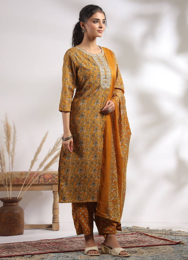 | Product Name | Mustard Color Cotton Fabric Stylish And Trendy Kurta Set For Ethnic Girls | |