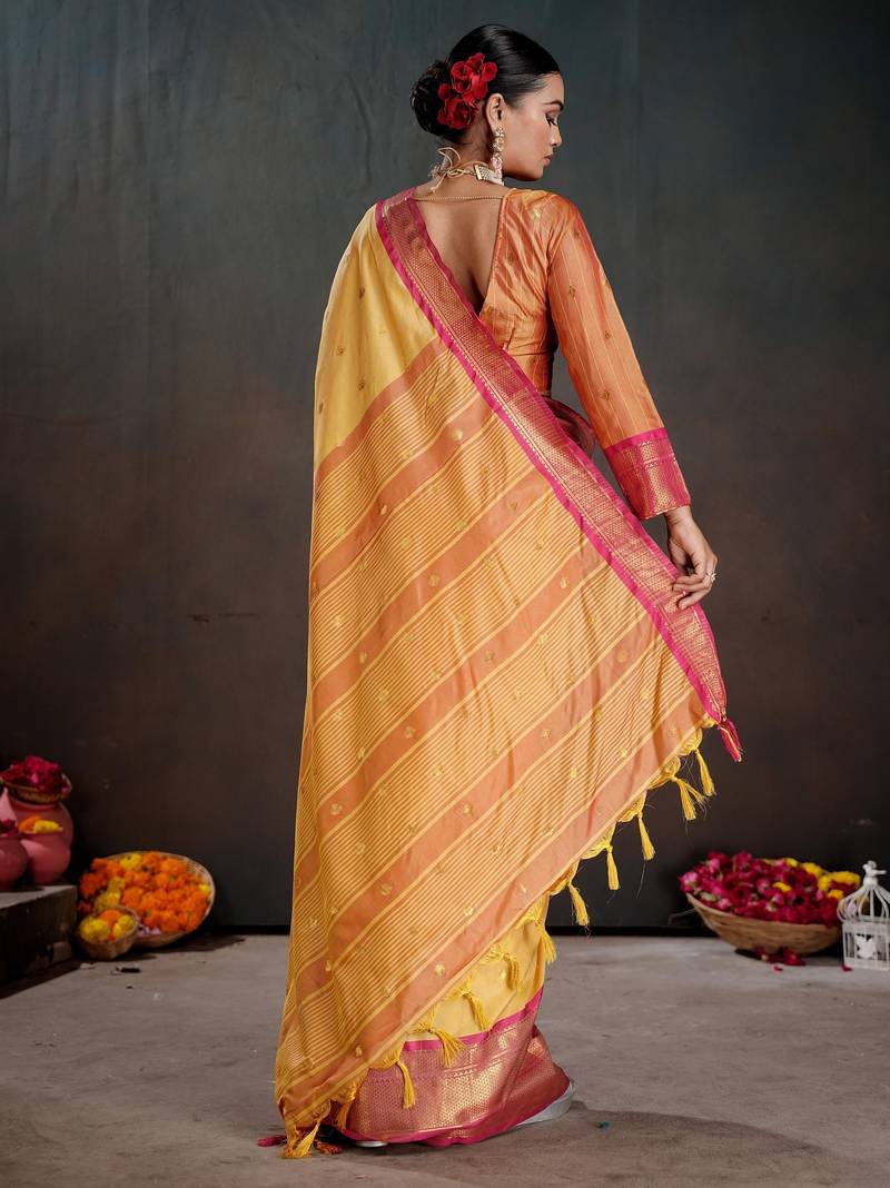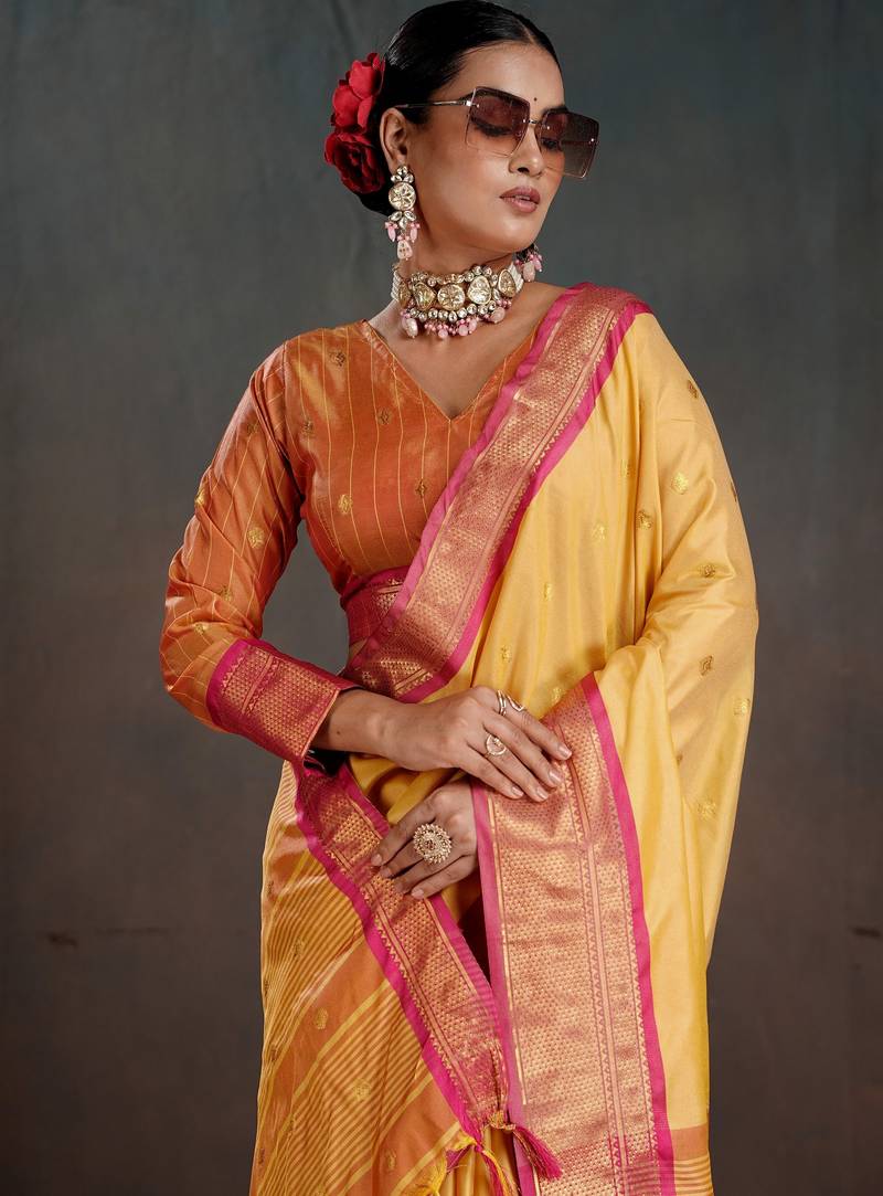 Mustard color graceful art silk fabric woven jacquard designer saree