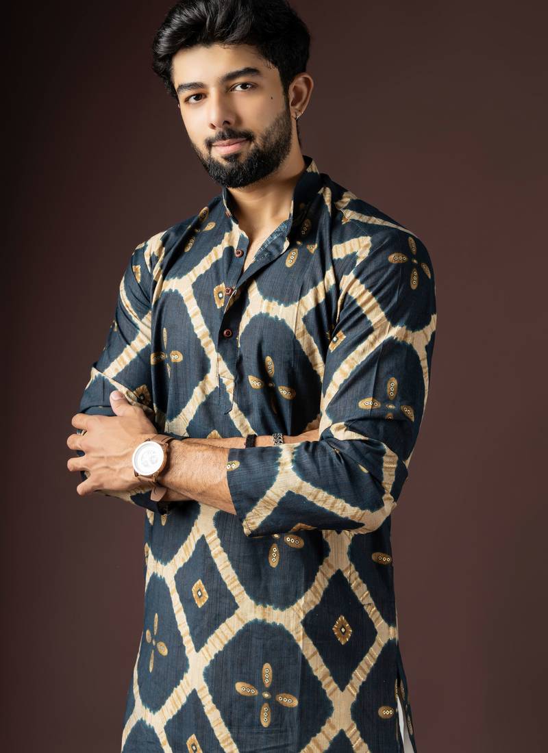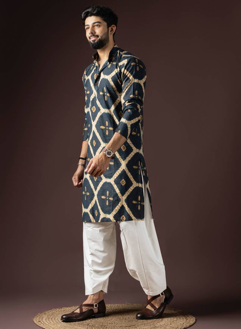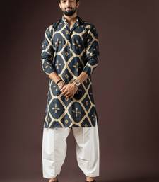 Product Name Navy Blue Color Beautiful Printed Rayon Fabric Ceremonial Men's Kurta Payjama
