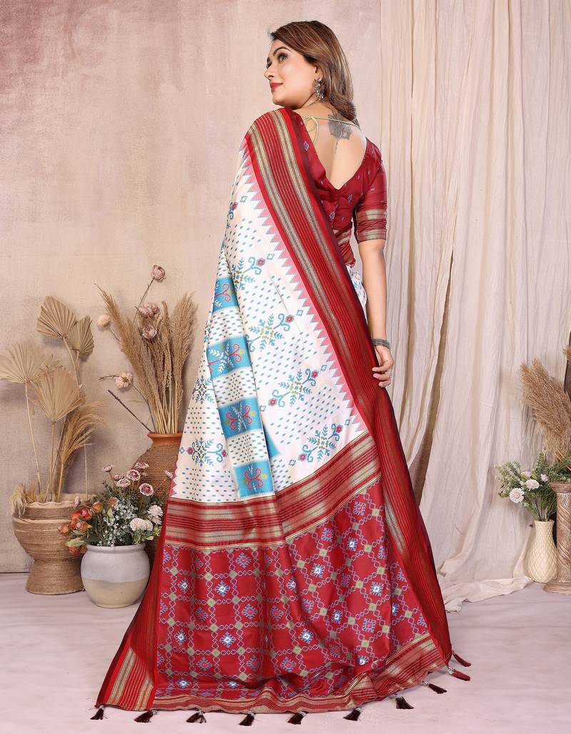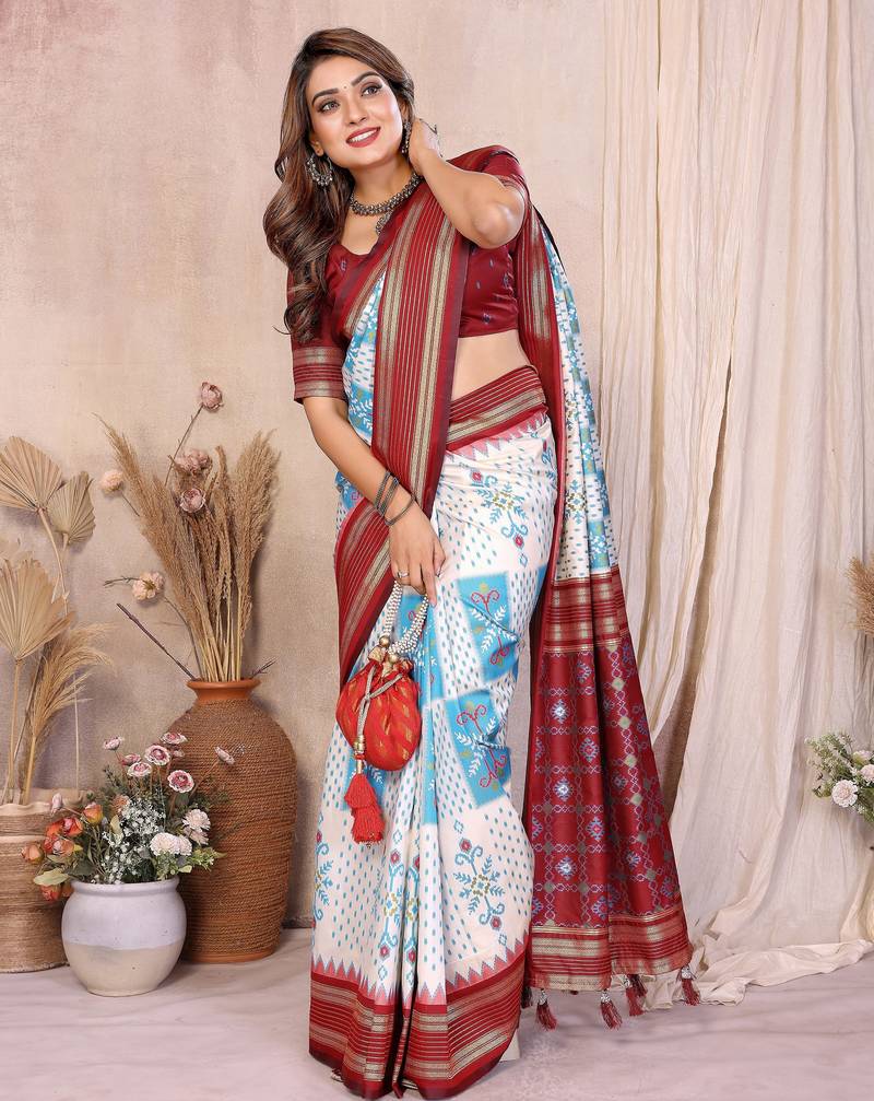 | Product Name | Off White Color Soft Silk Blend Blend Fabric Ikkat Weaving Designer Traditional Partywear Saree | |