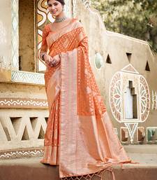 Orange color assam silk blend fabric woven designer saree for party looks