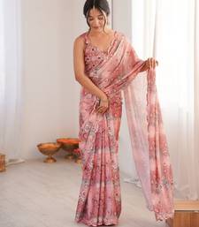 | Product Name | Peach Color Chinon Fabric Digital Print Smart Ethnic Saree | |