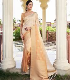 Peach color georgette fabric heavy wevon designer work graceful saree