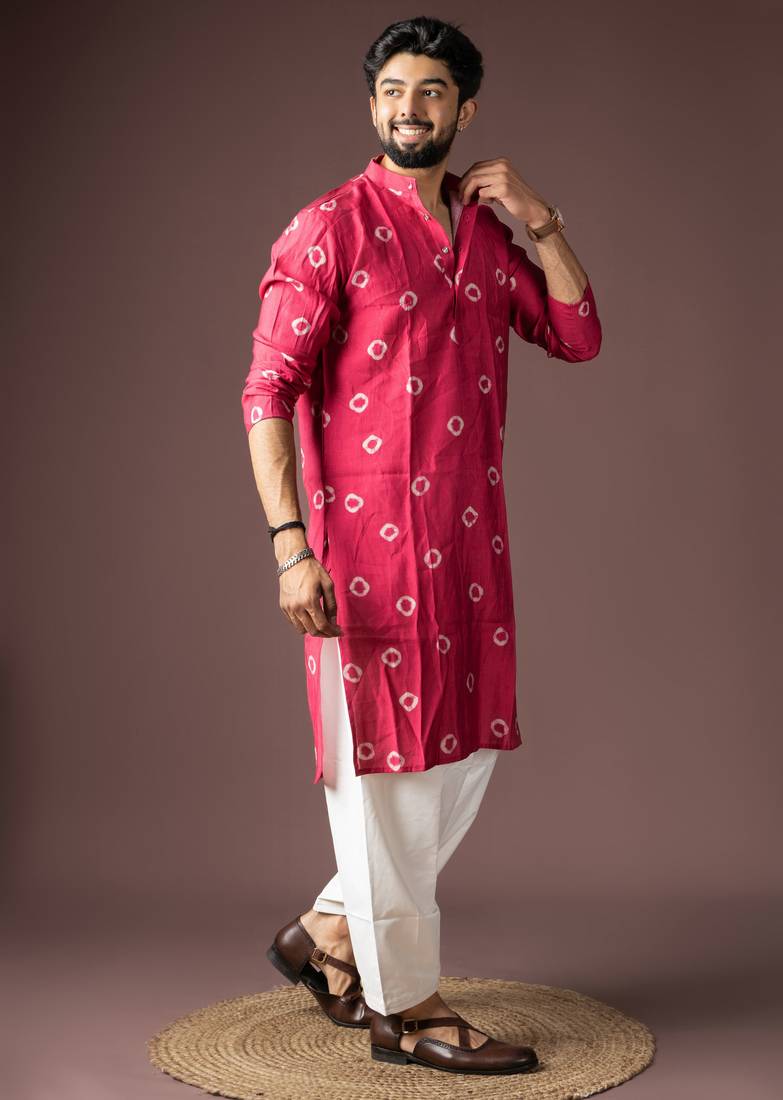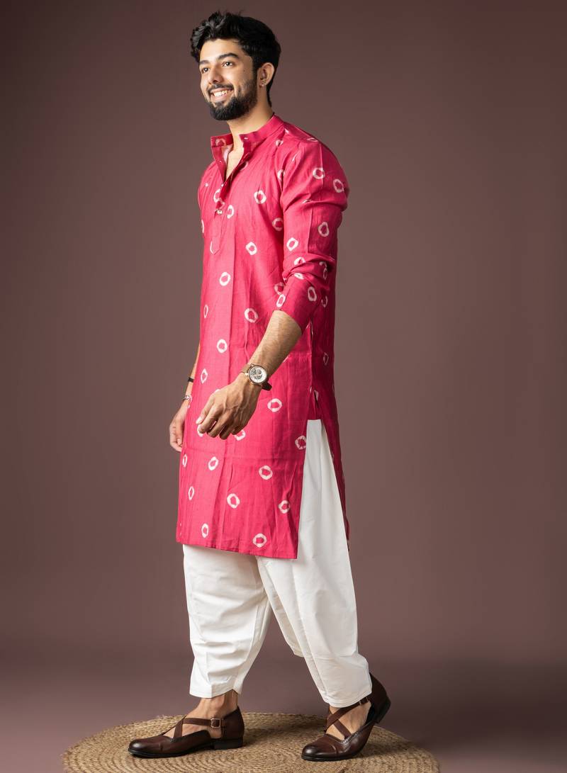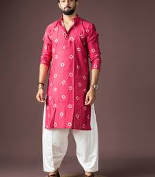 Pink color beautiful printed viscose fabric ceremonial men's kurta payjama