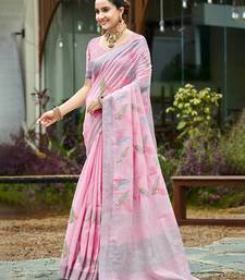 Pink color beautiful rich looks designer linen fabric ceremonial saree