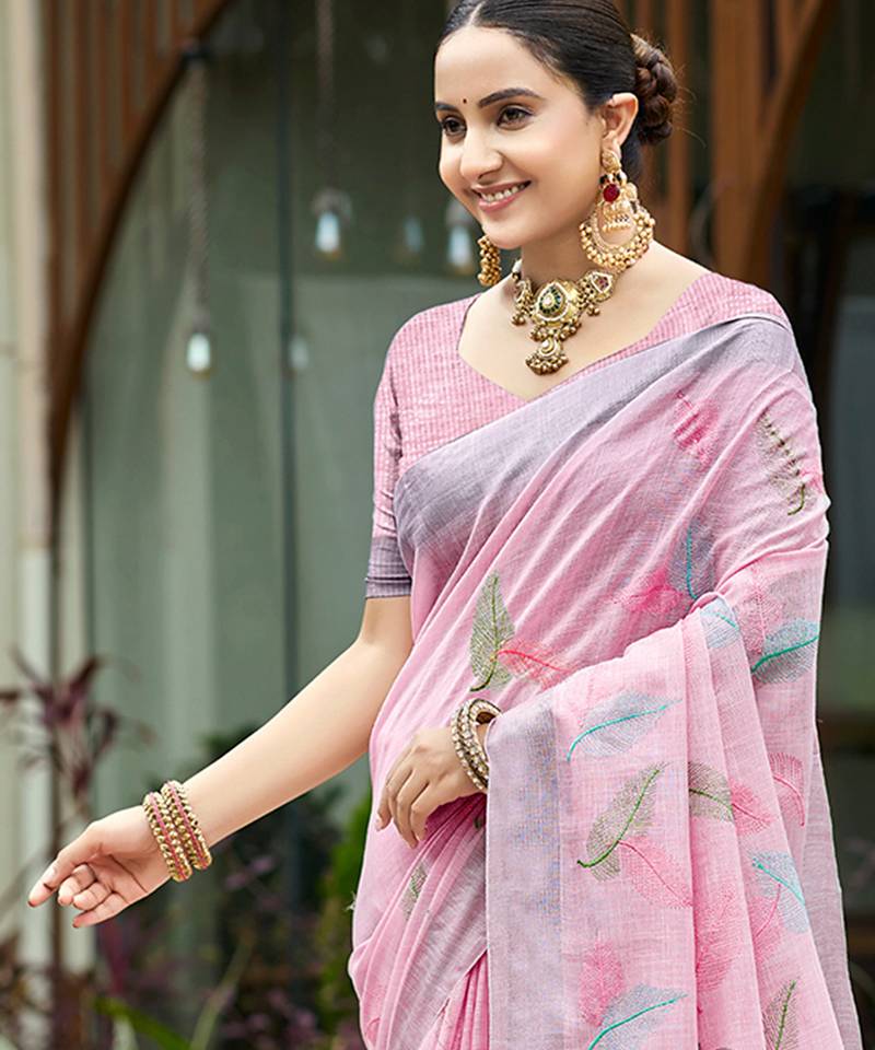 | Product Name | Pink Color Beautiful Rich Looks Designer Linen Fabric Ceremonial Saree | |