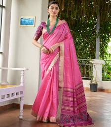 Pink color khadi raw silk blend blend fabric woven meena rich pallu border designer beautiful saree