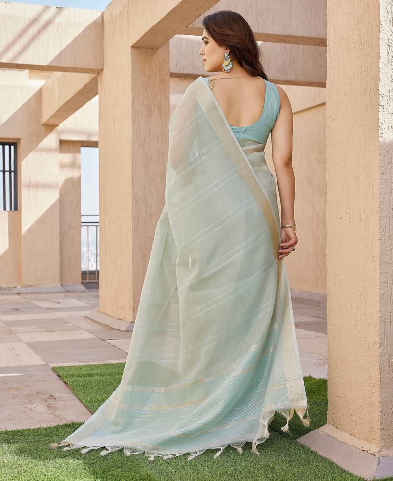Pista color tissue linen art silk fabric weaving jari lining designer saree