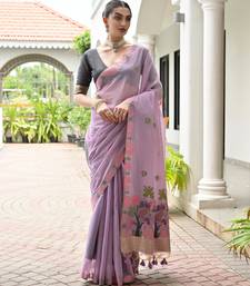 Purple color chanderi cotton fabric weaving reshan flower designer ethnic saree