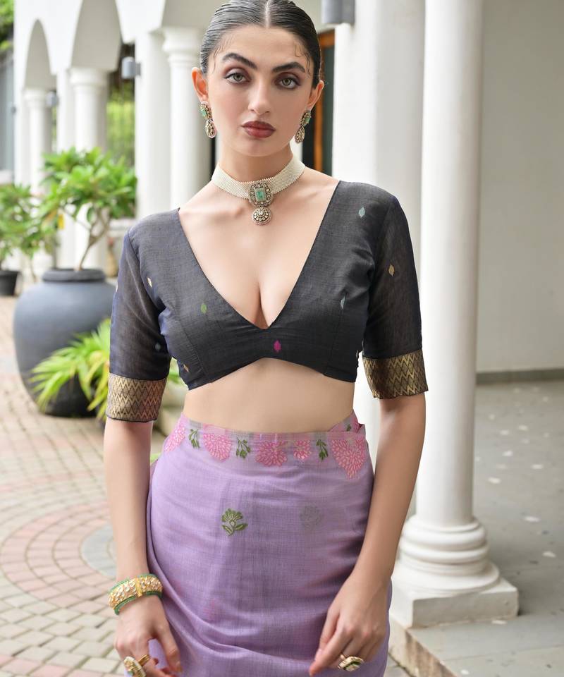 | Product Name | Purple Color Chanderi Cotton Fabric Weaving Reshan Flower Designer Ethnic Saree | |