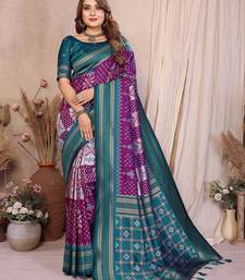 Purple color soft silk blend blend fabric ikkat weaving designer traditional partywear saree
