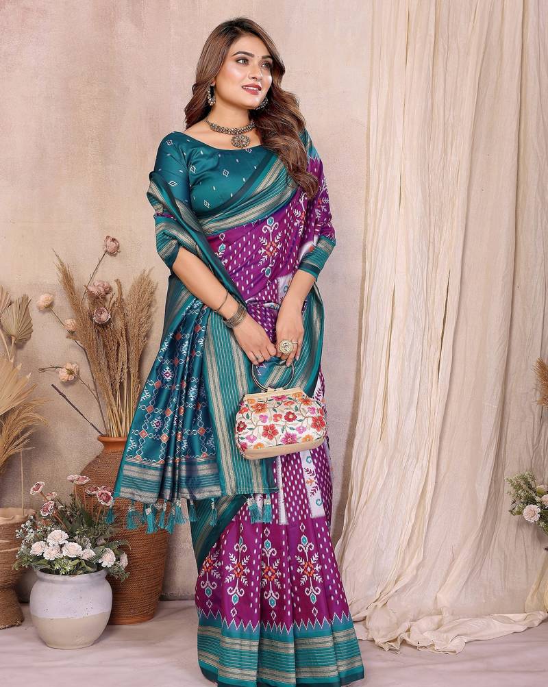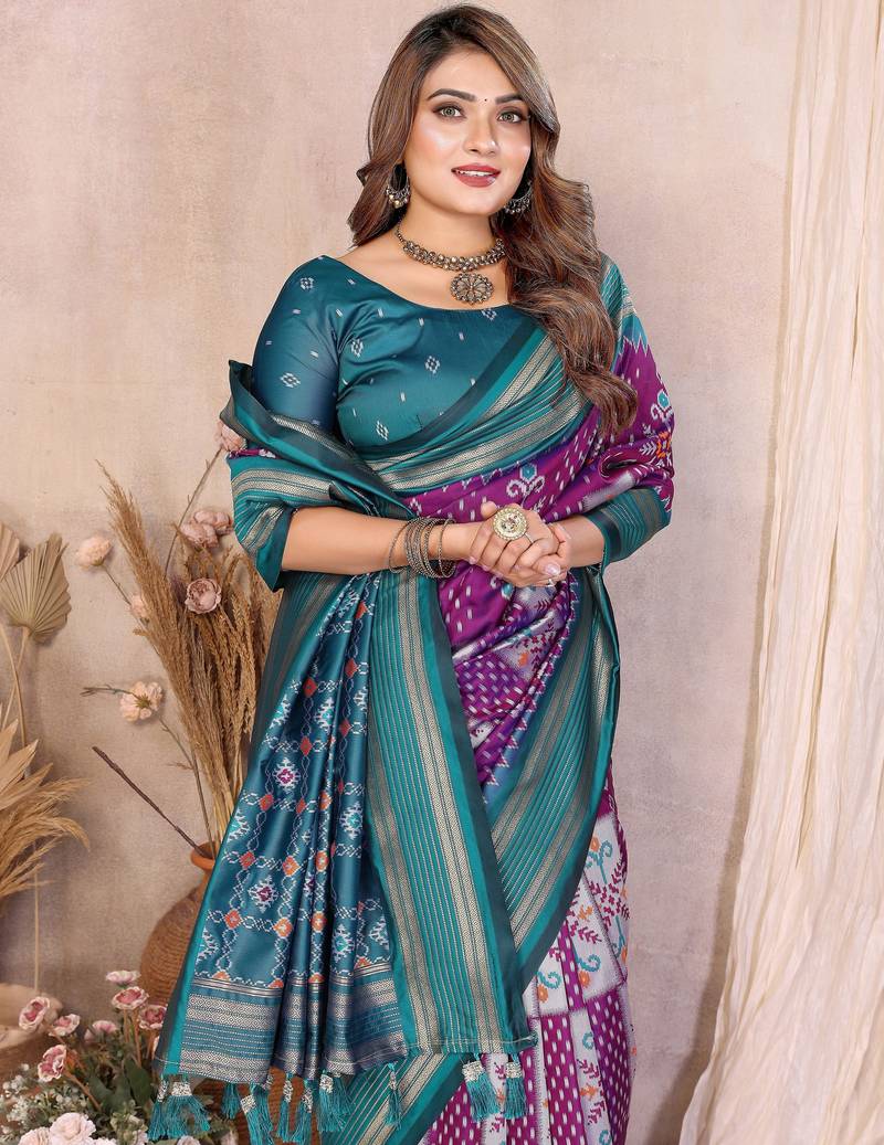 | Product Name | Purple Color Soft Silk Blend Blend Fabric Ikkat Weaving Designer Traditional Partywear Saree | |