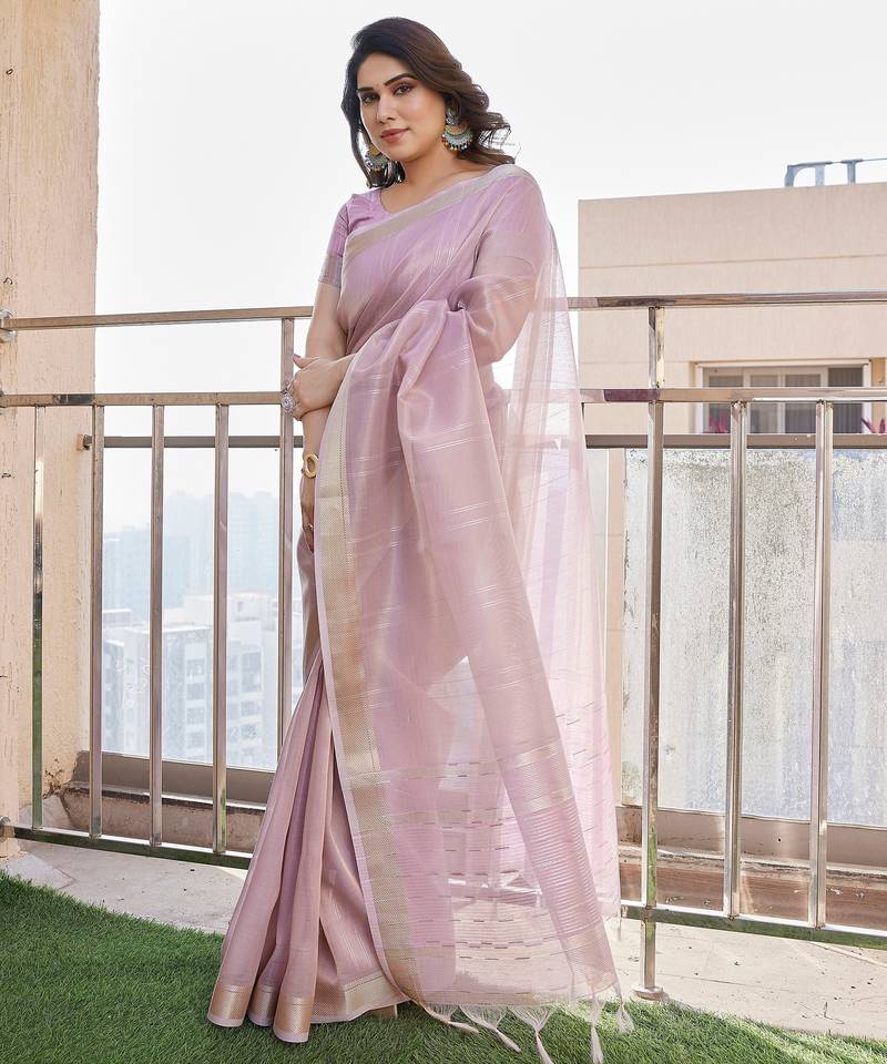 Purple color tissue linen art silk fabric weaving jari lining designer saree