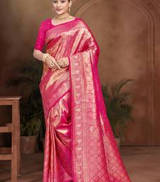 Rani pink color kanjivaram silk blend fabric woven designer graceful partywear saree
