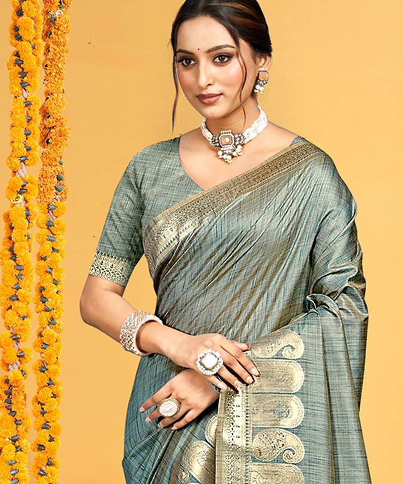 Teal color beautiful assam silk blend blend fabric saree woven designer saree