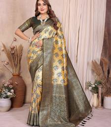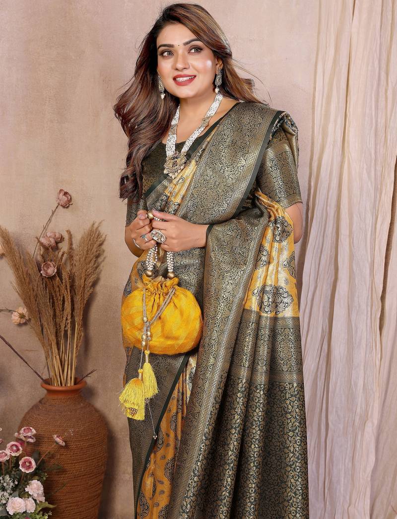 Yellow color heavy rich banarasi tissue silk blend blend for ceremonial traditional looks