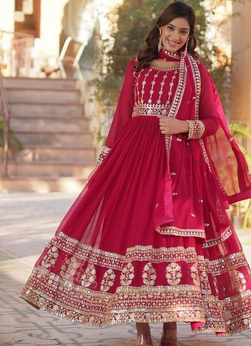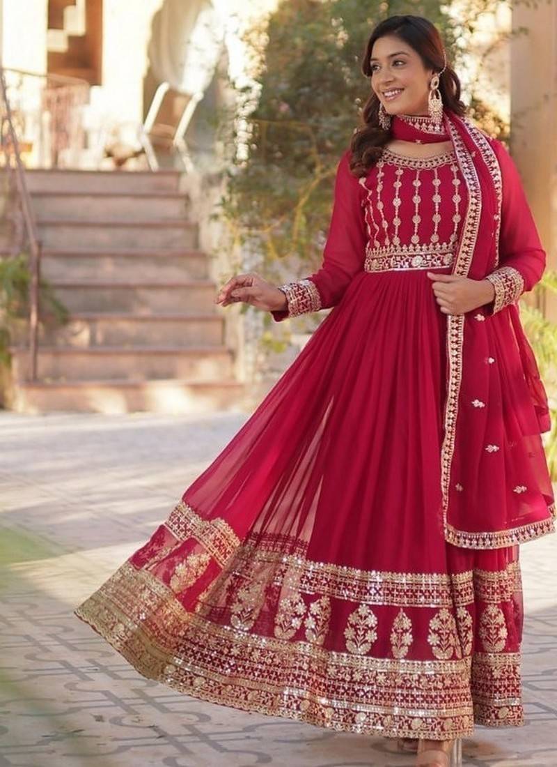 | Product Name | Pink Zari & Sequins Embroidered Work Georgette Stitched Kurta & Dupatta Set | |