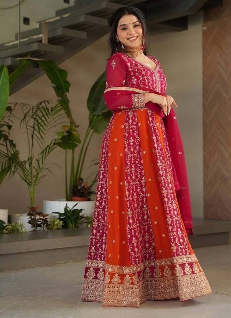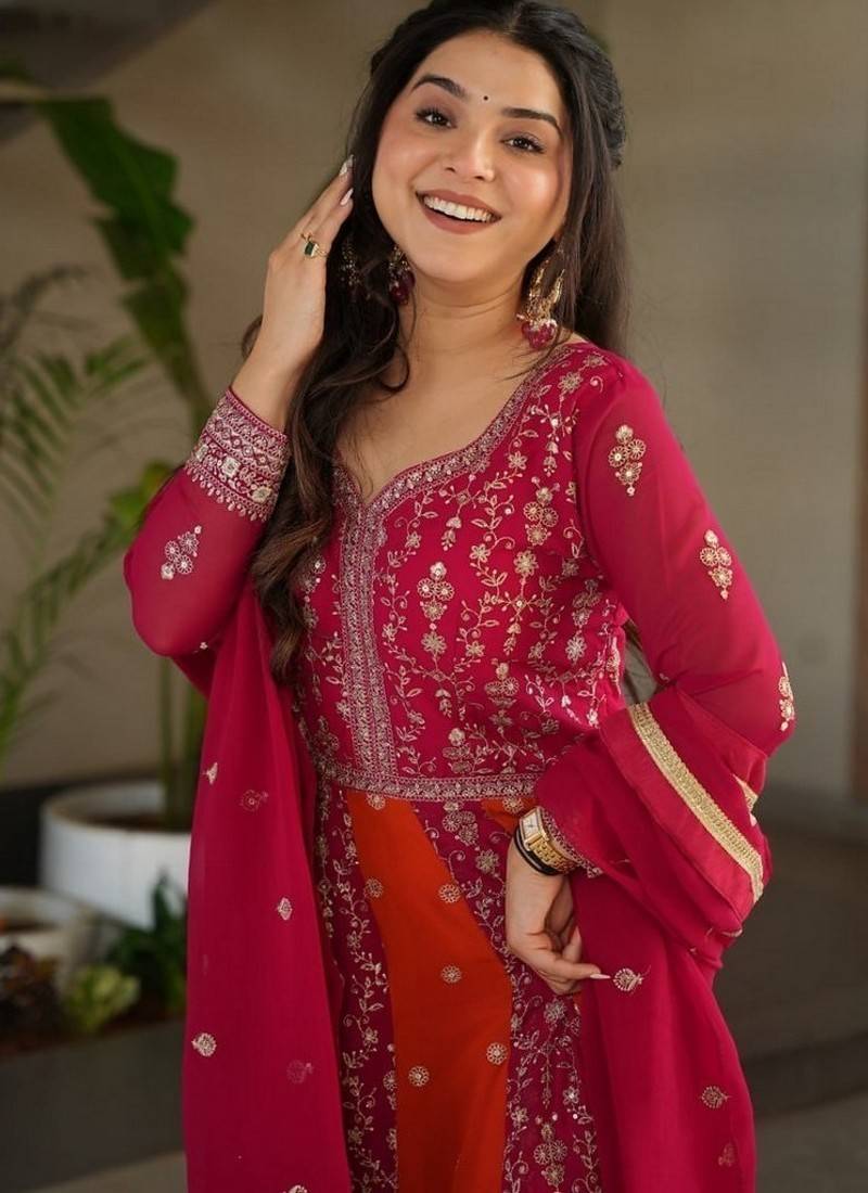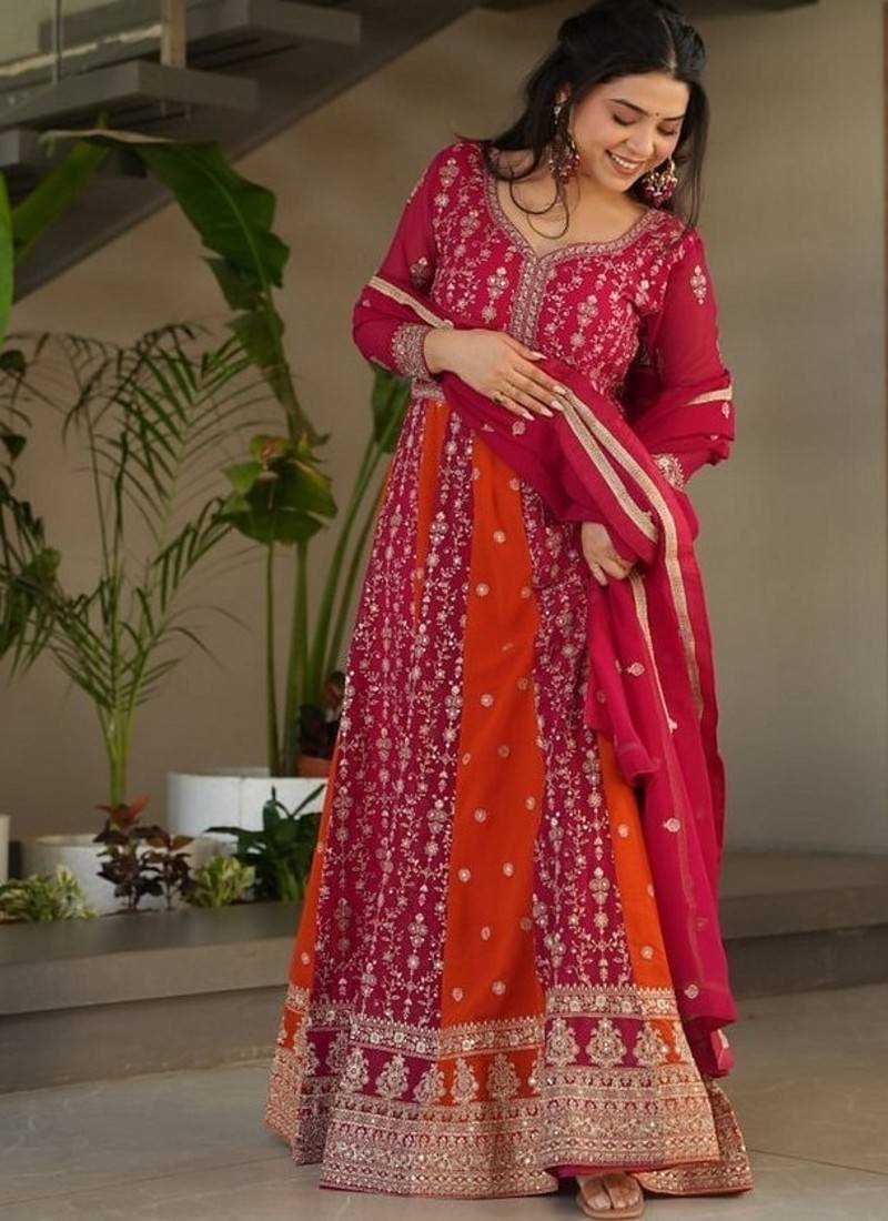 | Product Name | Pink Zari & Sequins Embroidered Work Georgette Stitched Kurta & Dupatta Set | |