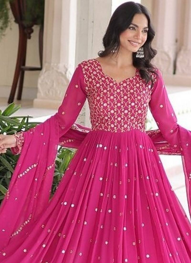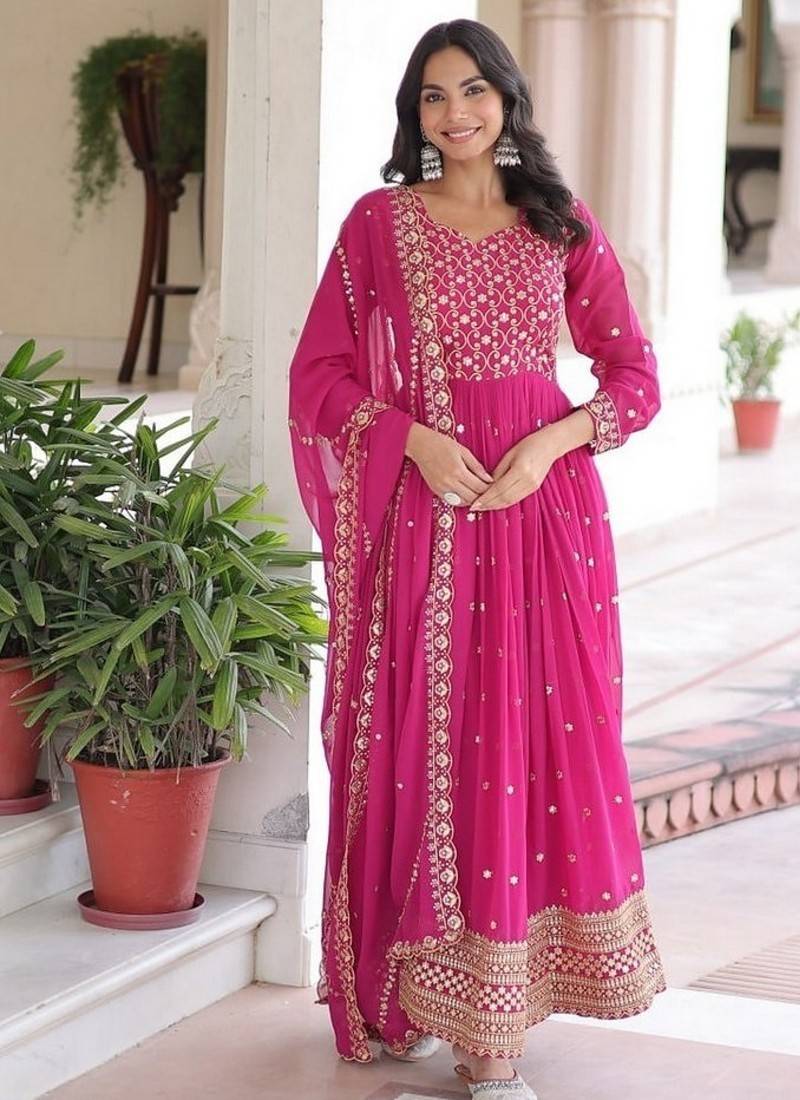 | Product Name | Pink Zari & Sequins Embroidered Work Georgette Stitched Kurta & Dupatta Set | |
