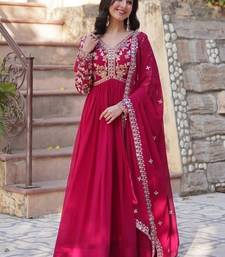 Pink zari & sequins embroidered work georgette stitched kurta & dupatta set