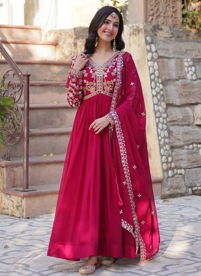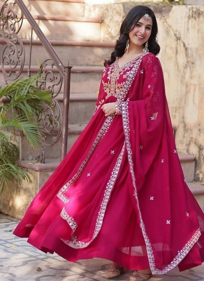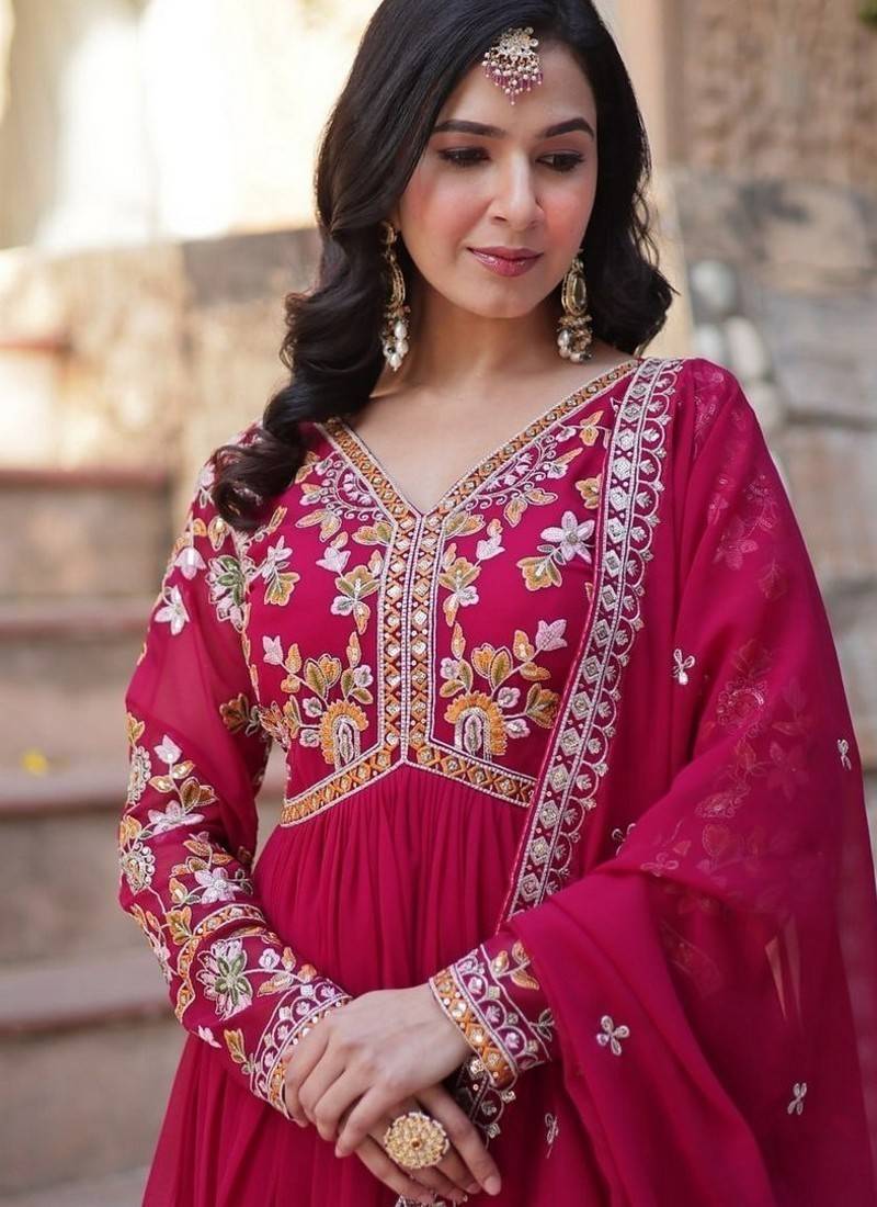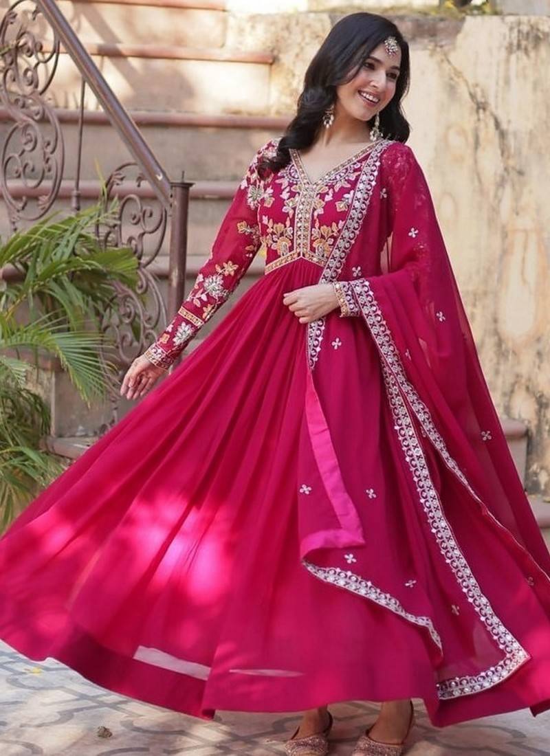 | Product Name | Pink Zari & Sequins Embroidered Work Georgette Stitched Kurta & Dupatta Set | |