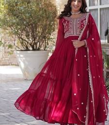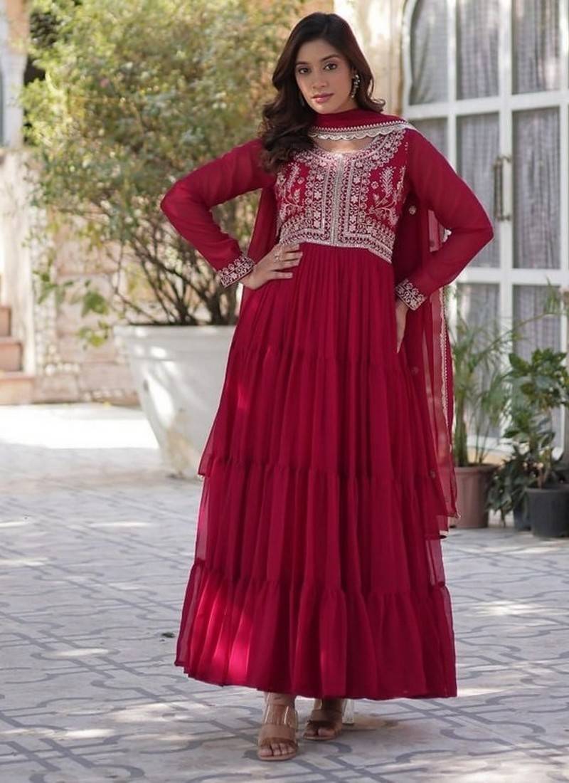 Pink zari & sequins embroidered work georgette stitched kurta & dupatta set