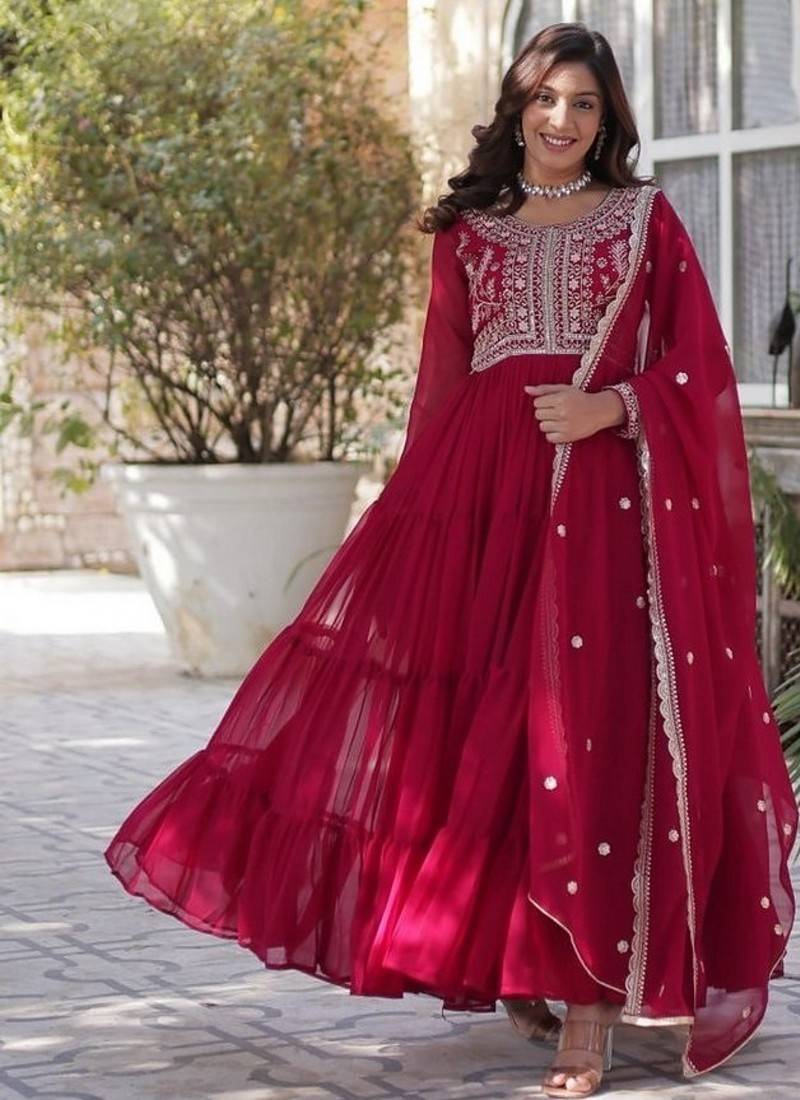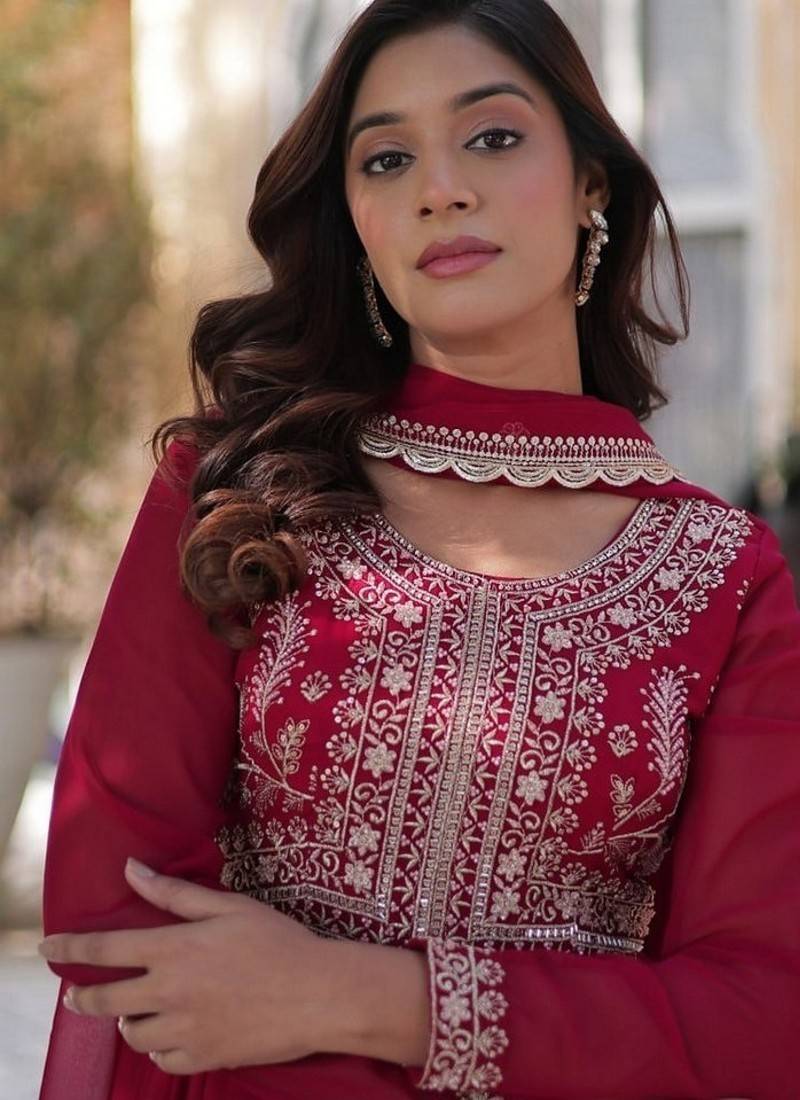 | Product Name | Pink Zari & Sequins Embroidered Work Georgette Stitched Kurta & Dupatta Set | |